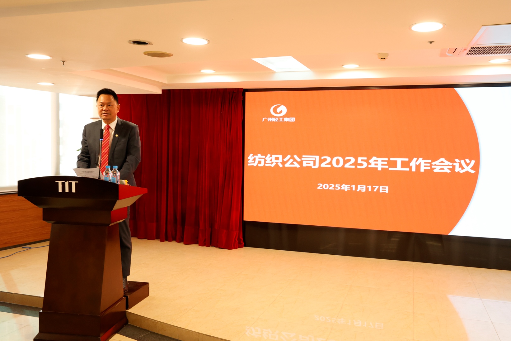 1月17日下午,紡織公司2025年工作會議在廣德大廈15樓禮堂召開。會議由公司副總經(jīng)理關(guān)勇主持。廣州輕工集團(tuán)副總經(jīng)理陳家園出席并講話。