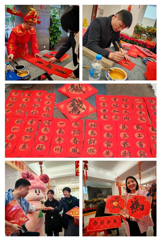 廣德大廈一樓化身紅色文化長廊,“財(cái)神爺”與“福手”揮毫潑墨,800余副鴻運(yùn)福字與迎春對聯(lián)躍然紙上,員工歡樂領(lǐng)取?!爸袊t,幸福年”珠江牌“省凳”助力主題展區(qū),由塑料板塊管培生設(shè)計(jì)的吉祥物“江江”手持“珠江”文創(chuàng)禮品穿梭人群,憨態(tài)可掬的互動瞬間成為朋友圈“爆款”。