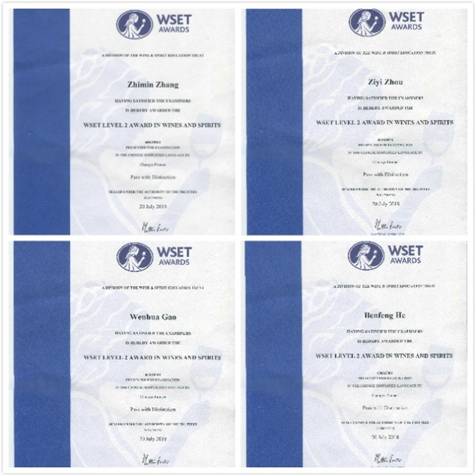 團(tuán)隊(duì)成員全部通過WSET專業(yè)二級品酒師