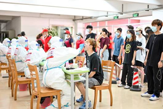 排隊、錄入信息、咽拭子采樣,在集中采樣點,師生員工全程佩戴口罩,自覺間隔一米,按10人一組分批分次有序前往采樣區(qū),開設(shè)10條通道,在現(xiàn)場醫(yī)護人員的引導(dǎo)下,有序進行核酸檢測的采樣。