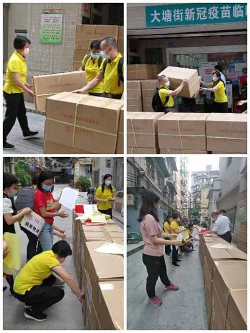 當前,廣州疫情趨緊,4月12日,紡織公司黨委書記、董事長簡瑋儀,黨委副書記、紀委書記、工會主席丘海瀾親自帶隊,把1500盒利工民毛巾送到了越秀區(qū)大塘街道。
